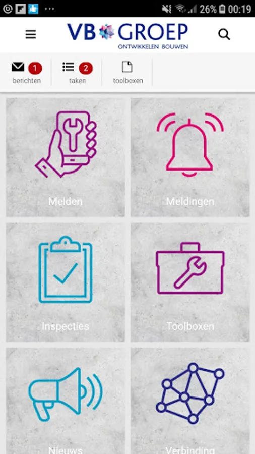 VB stands for Safe Building. We believe working safely is of primary importance. VB Groep invests in the continuous development and improvement of a proactive safety policy. In this way we try to prevent the occurrence and occurrence of accidents and incidents. With this VB Portal, our employees, clients, contractors and third parties have access to reporting unsafe situations, accidents and ideas for improvement. After all, we build safely together. In addition, the submitted reports and the handling thereof can also be found via this app. To make a report or view information, logging in is required.