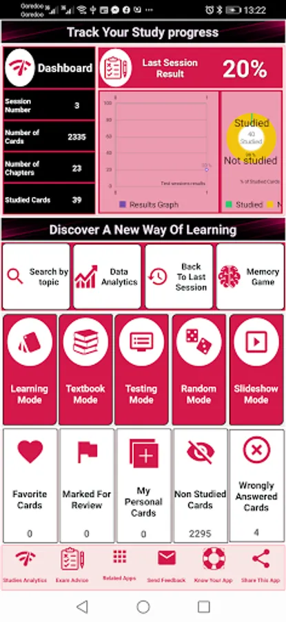 - 5 Study modes (learning mode, Testing mode, handout mode, slideshow mode & random mode).