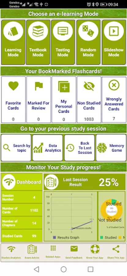- 5 Study modes (learning mode, Testing mode, handout mode, test mode, slideshow mode & random mode).