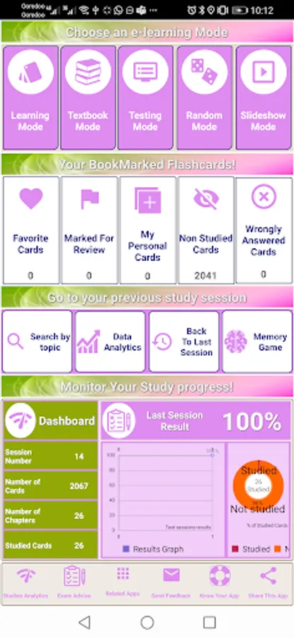 - 5 Study modes (learning mode, Testing mode, handout mode, test mode, slideshow mode & random mode).