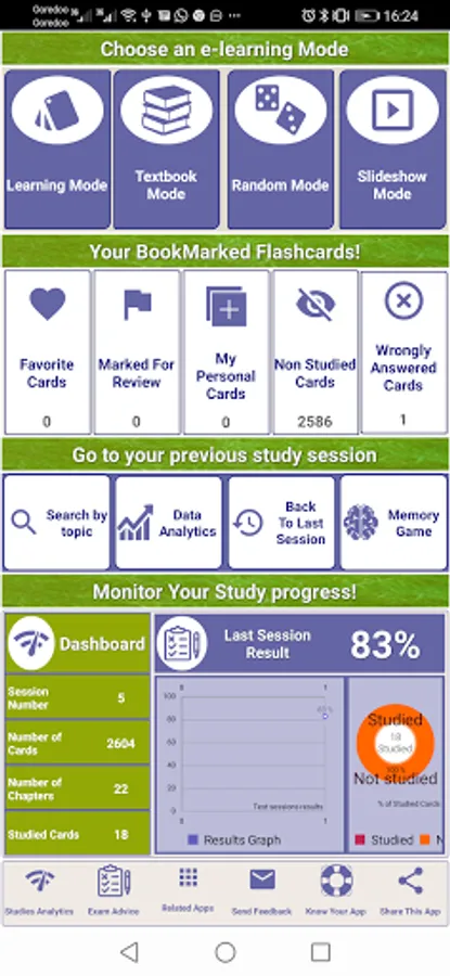 - 5 Study modes (learning mode, Testing mode, handout mode, slideshow mode & random mode).