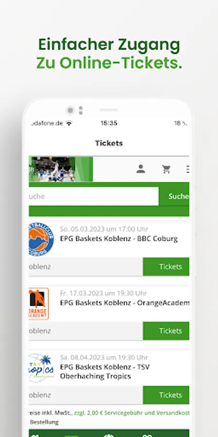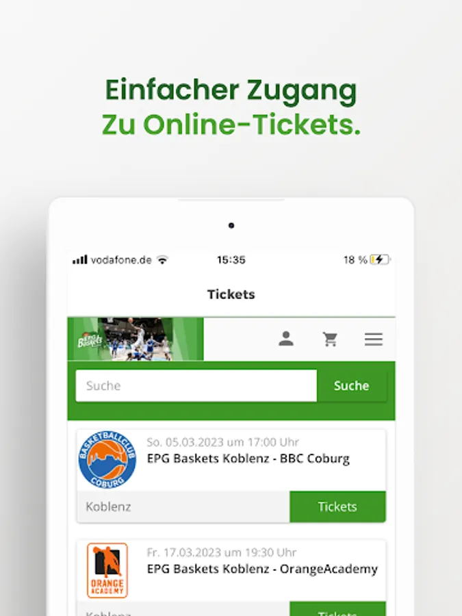 The baskets are now also digital! The new fan app has the latest news straight to your smartphone: squad, match day, tickets, competitions and partner offers (voucher system). Receive hot deals from the fan shop and be provided with the news directly via push notifications.