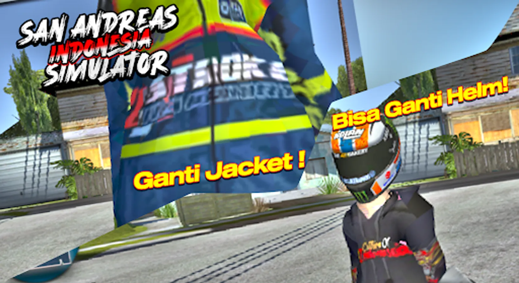 di Game San Andreas Indonesia ini ada Jacket Drag Race, ada Jacket Sunmori, dan Jacket Kurir gais hahaha..