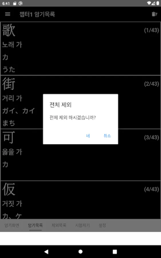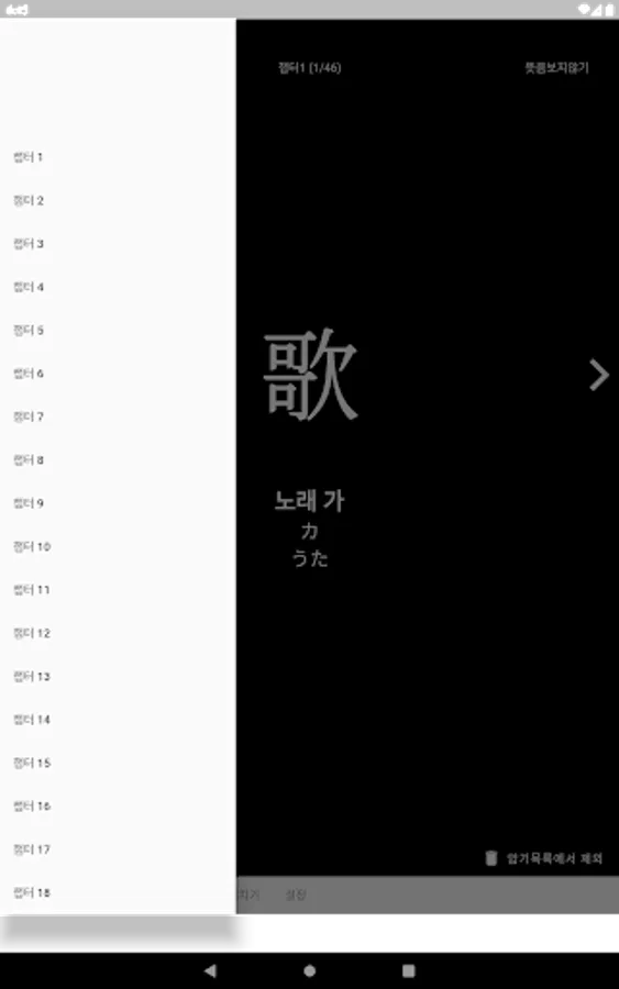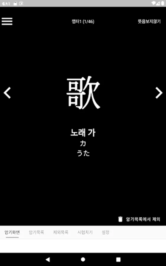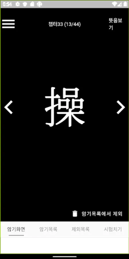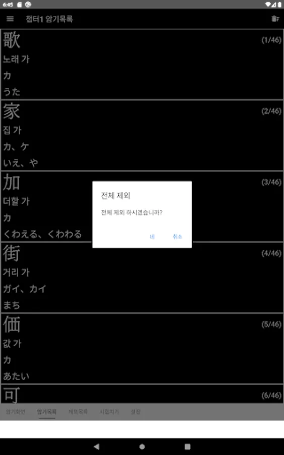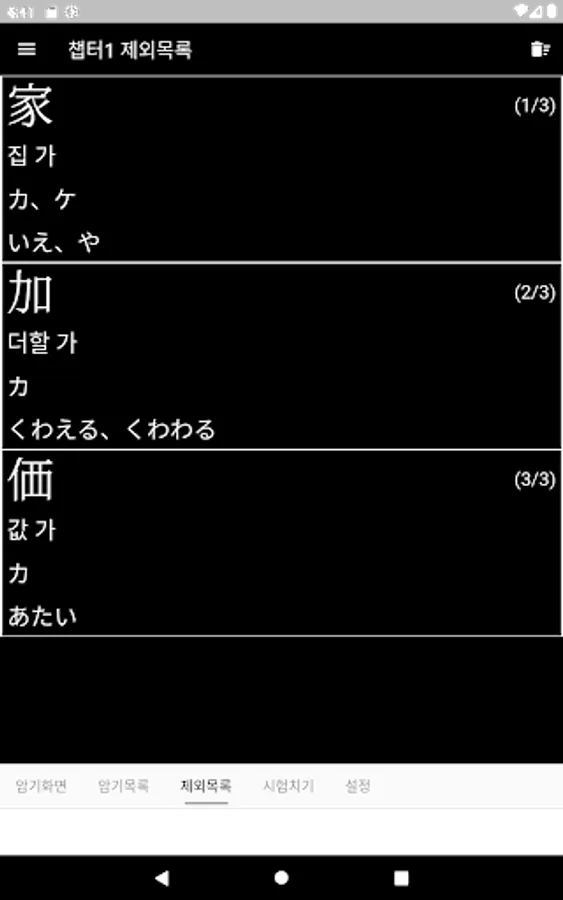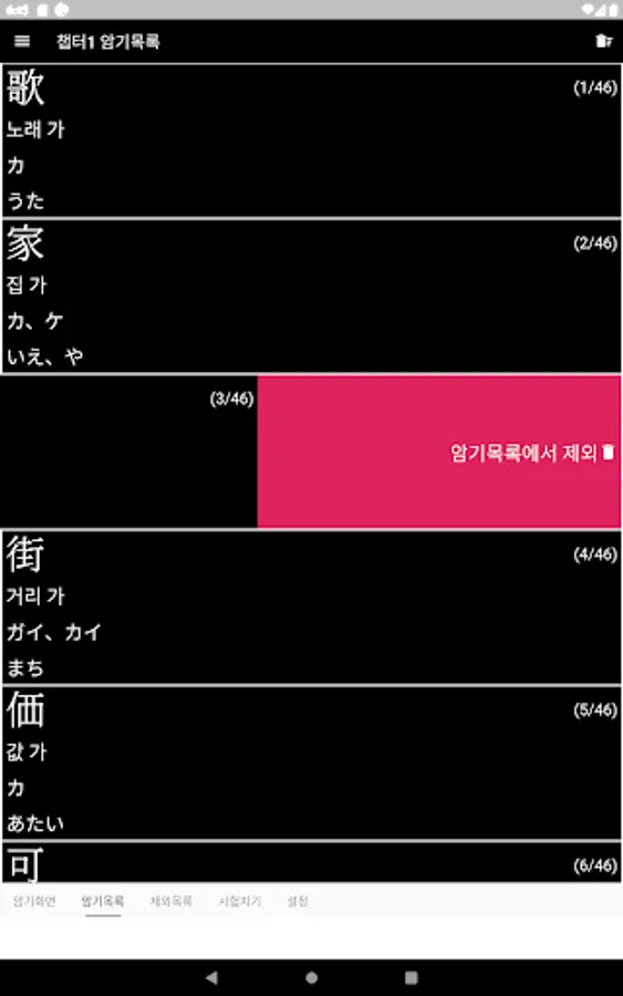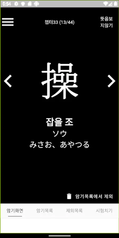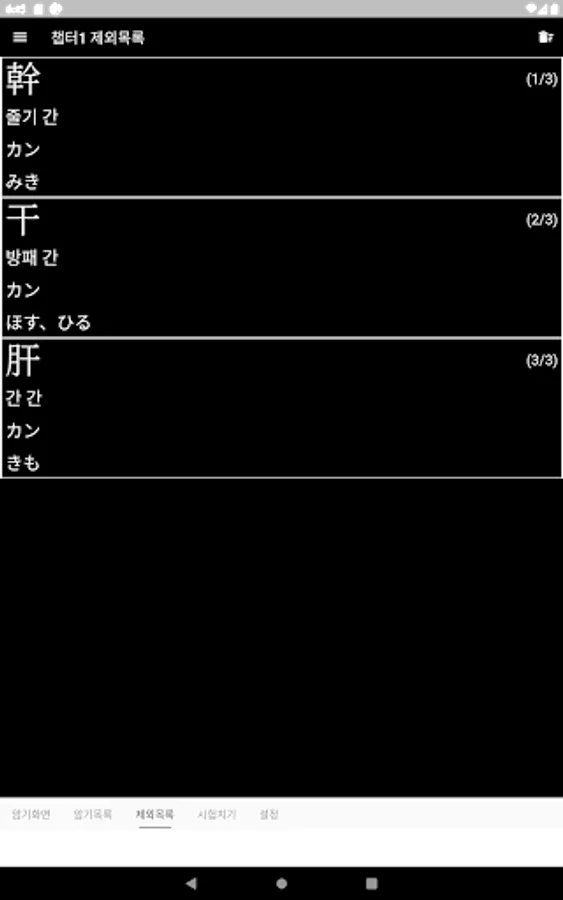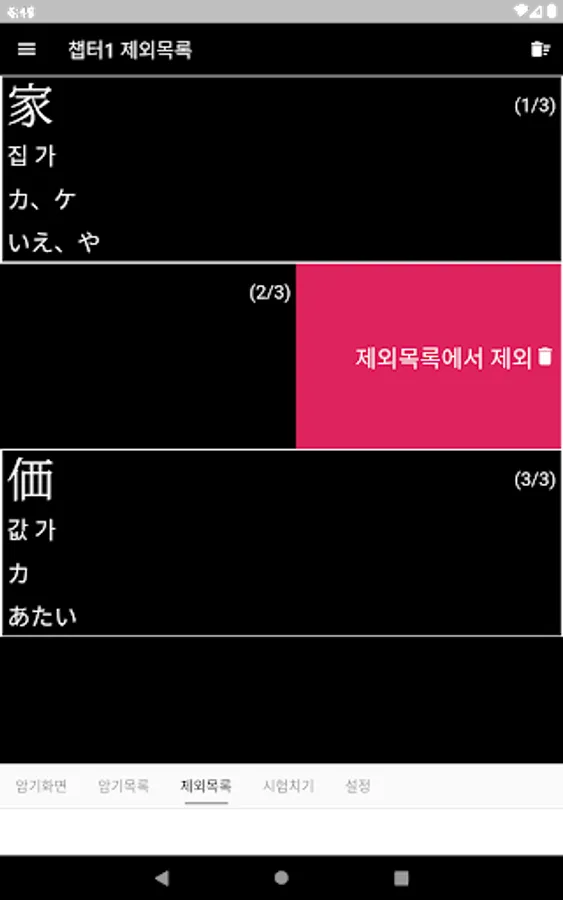 Excluded Chinese characters are displayed in the exclusion list on the right tab. If you push an item in the list to the left, the Chinese characters are excluded from the exclusion list and included in the memorization list.