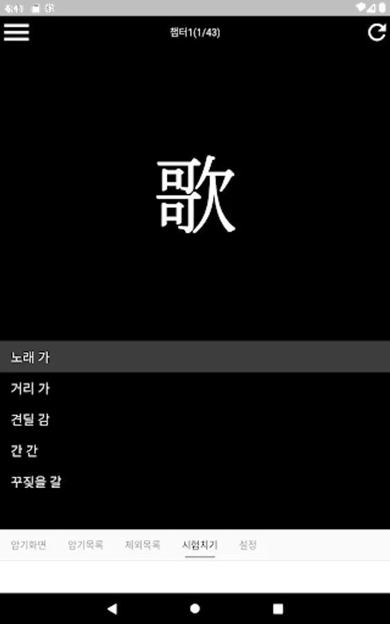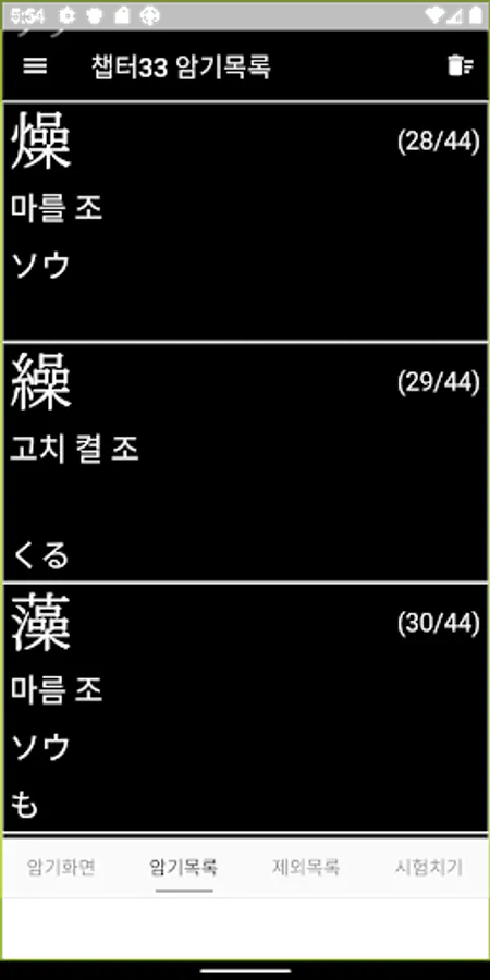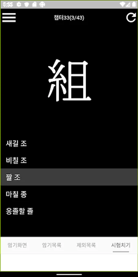 In the Test tab, you can take a test for the Chinese characters in the memorization list of the chapter.