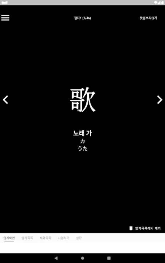 You can move to the next or previous kanji by touching the left and right arrow buttons on the screen.