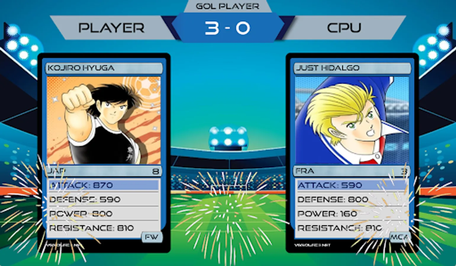 Card game which is based on scoring goals according to the tactic you choose, if it is higher you score a goal, if it is lower you concede a goal and if they are equal tie.