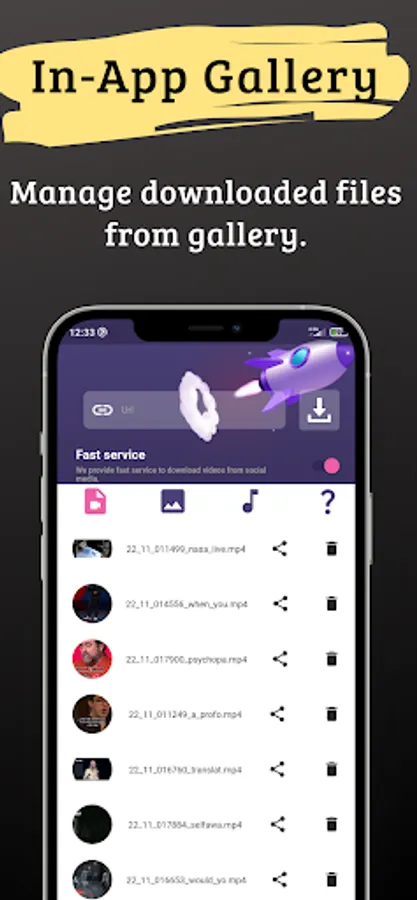 Keep your downloaded videos neatly organized in your device's gallery. Create playlists and manage your content effortlessly.