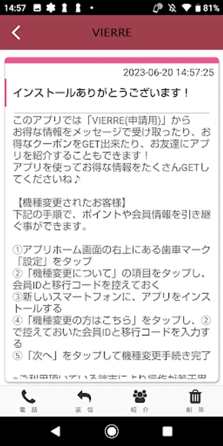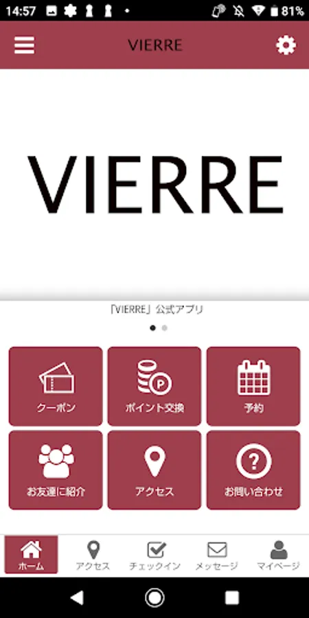 With this application, you can receive VIERRE's latest information and use convenient functions.