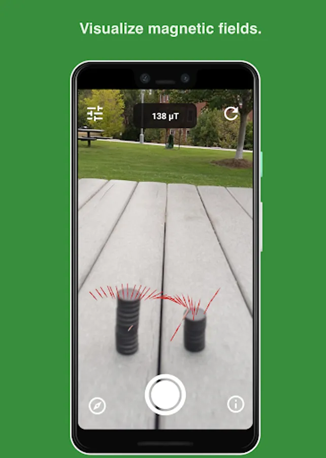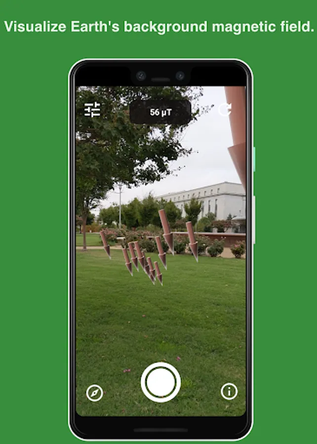 This app combines the data collected by the internal magnetometer with the three-dimensional mapping of ARCore to plot magnetic fields in real space superimposed upon the camera view.