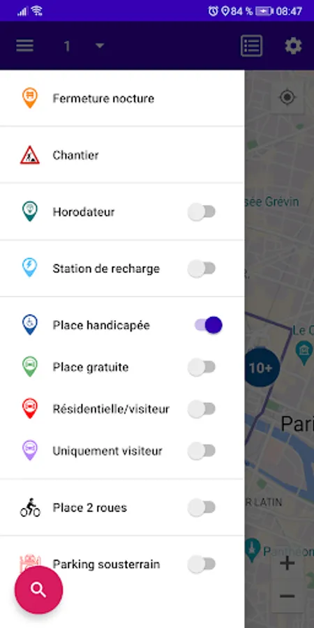 * parking meters (means of payment accepted, tariffs, residential area, PMR or not, etc.).
