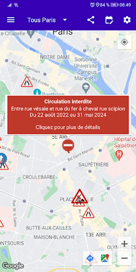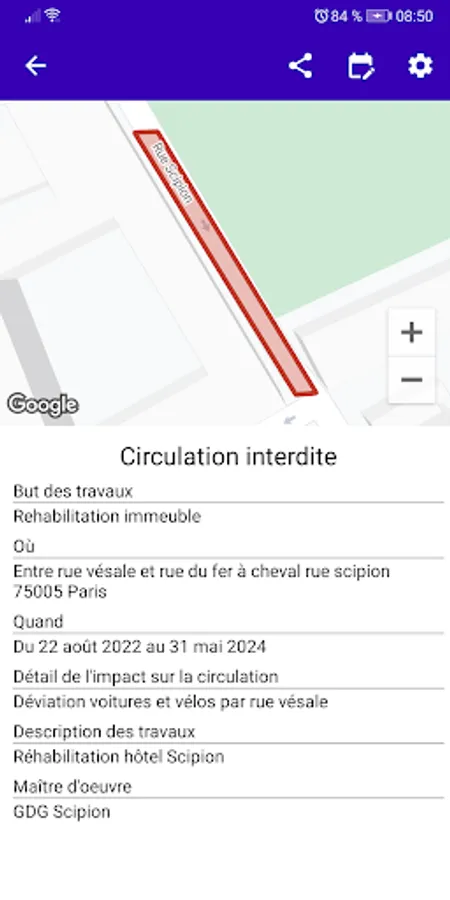 But also on the Parisian construction sites (location, description, duration and disturbances generated).