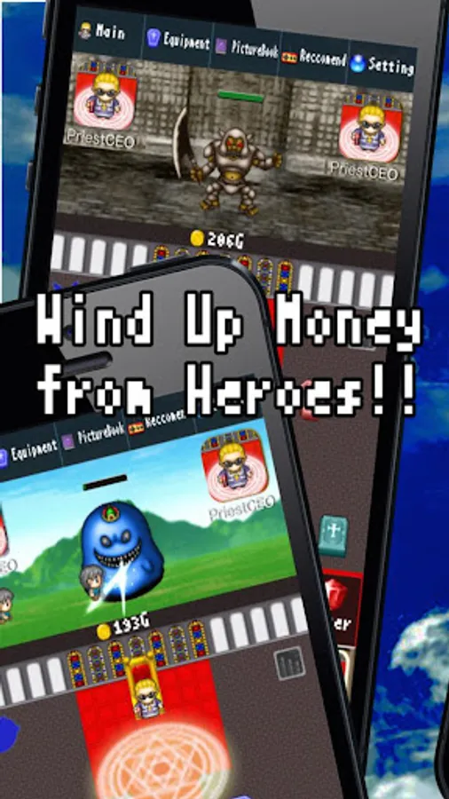 "Priest CEO" is a free RPG that Priest winds up money from heroes who was defeaten in attempt to rescue Princess kidnapped by monsters.