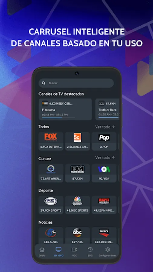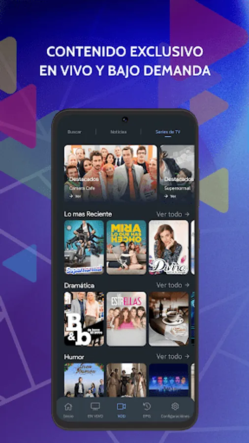 VIVOplay is television in your hands. We put at your disposal more than 25 live channels. You can also watch programs, movies, series, soap operas and news on demand, through our gallery on demand. Turn your cell phone or tablet into a TV to watch content from Caracol, RCN Nuestra Tele, RCN Novelas, NTN24, TVChile, Hola!TV, Azteca Click, Azteca Cinema, Azteca Corazón, Serie A3, Antena 3, Canal U, Deportes AyM, PXtv, Latin American Sports, Telefe, TV Venezuela and CB24. You will find, in a single app, live television from Argentina, Chile, Colombia, Costa Rica, Spain, Mexico, Puerto Rico, Uruguay and Venezuela.