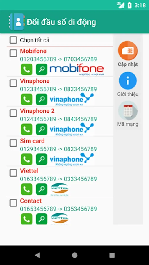• Show phone number attached to each house logo Viettel, Vinaphone, Mobifone, Gtel and Vietnamobile.