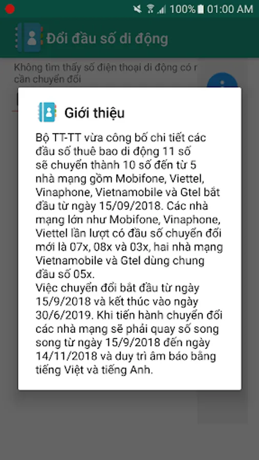 The transformation starts on 09/15/2018 and ends on 30/06/2019. When conducting conversion operators will have to dial in parallel (to maintain both the old and new numbers) from 09/15/2018 to 14/11/2018 days and maintain the tone in Vietnamese and English.