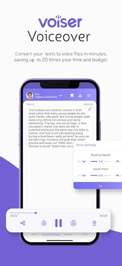 Voice your texts naturally and fluently in more than 75 languages with 550 voice tones. Edit changes like speed, volume, and pitch with the advanced voice editor.
