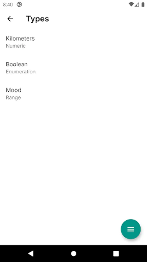 Define your custom types with number, enumerations or ranges. Create activities and track your progress. Use your own data types for maximum flexibility.