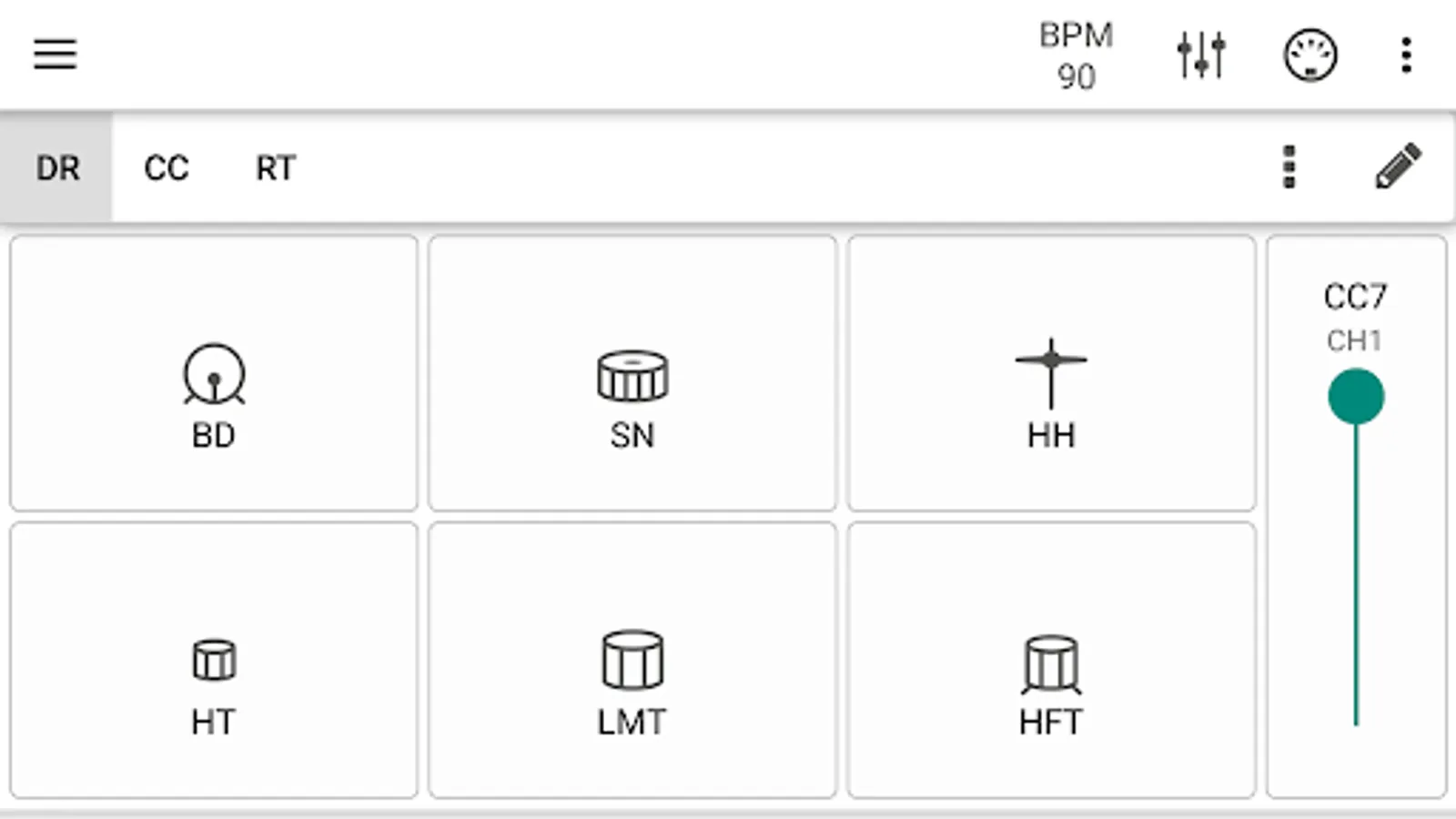 - Buttons (Notes, CC, Program Change, Real-time, Bytes, App)
