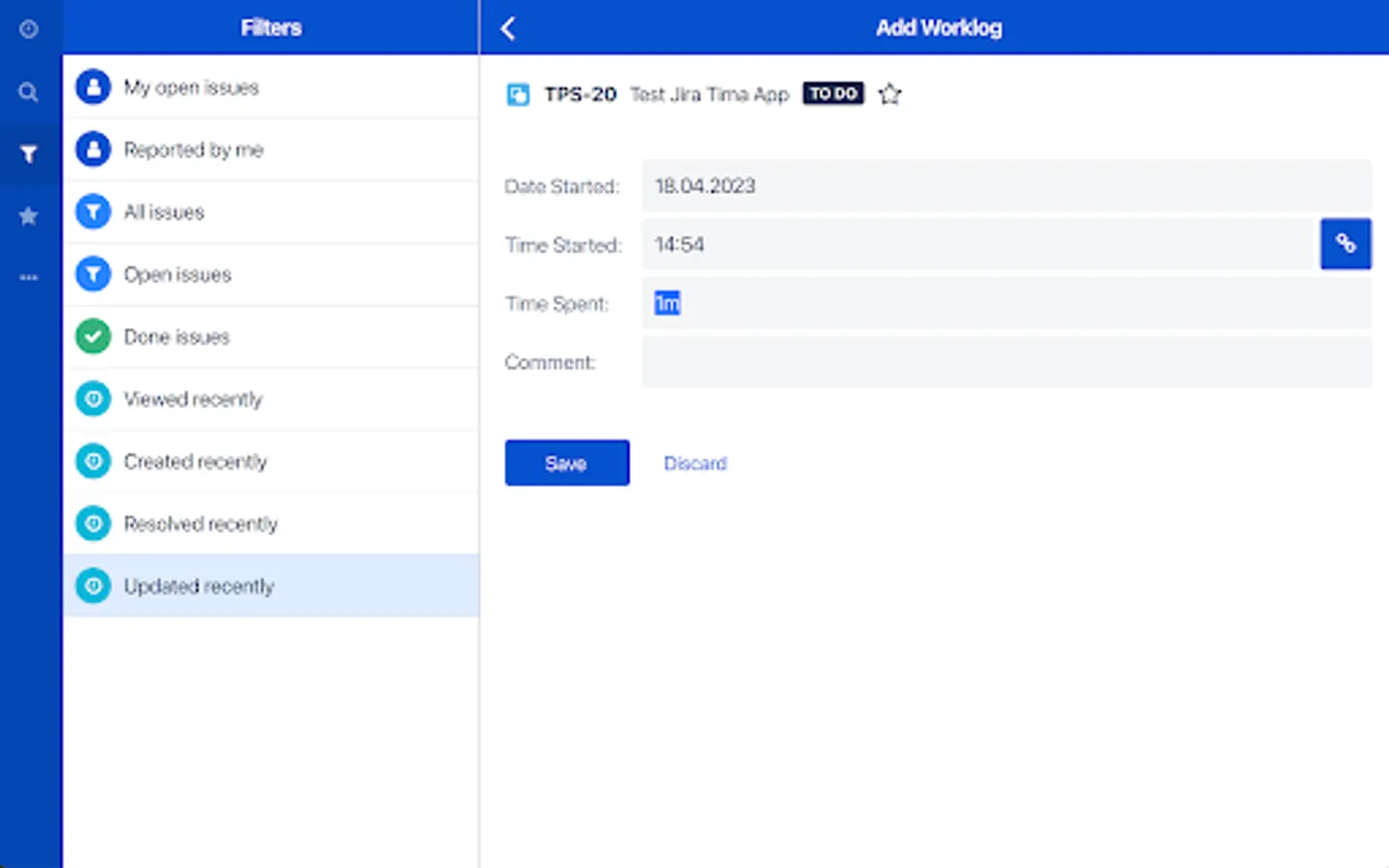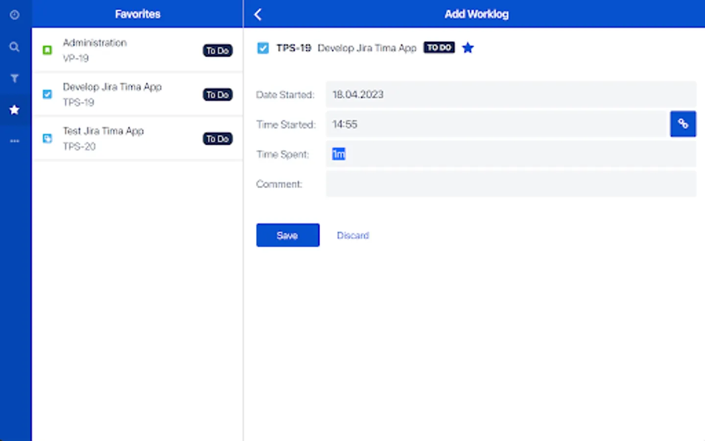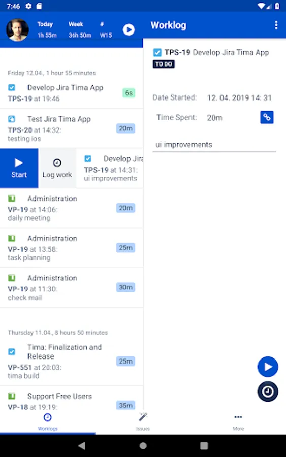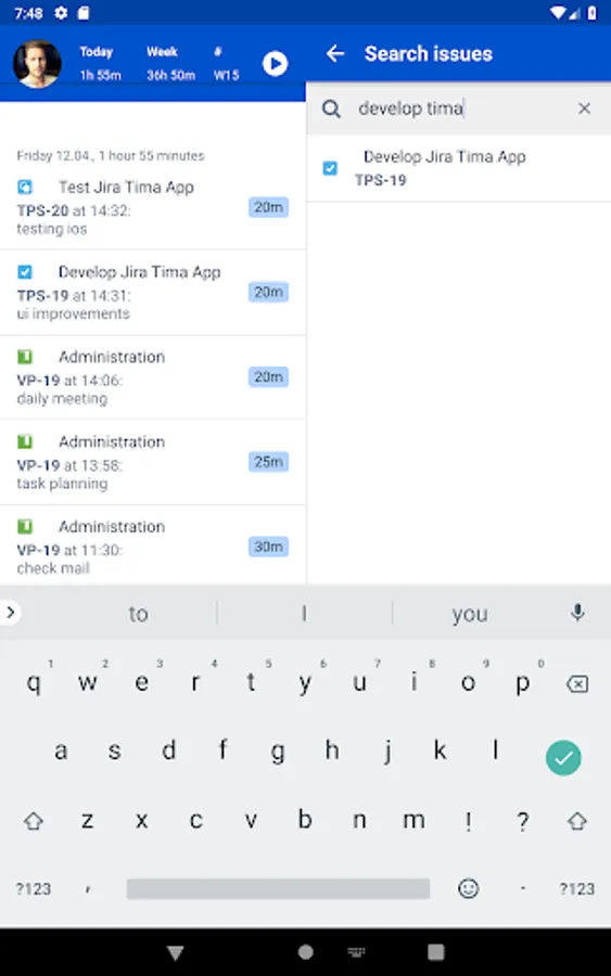 Tima is the solution for all your day2day Jira needs when you’re on the road. Track time, log work and view all your Jira issues: