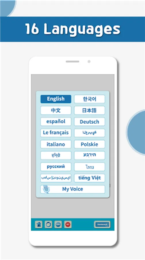 (English/Korean/Chinese/Japanese/Spanish/Russian/Italian/French/German/Polish/Arabic/Hebrew/Hindi/Thai/Vietnamese/Indonesian)