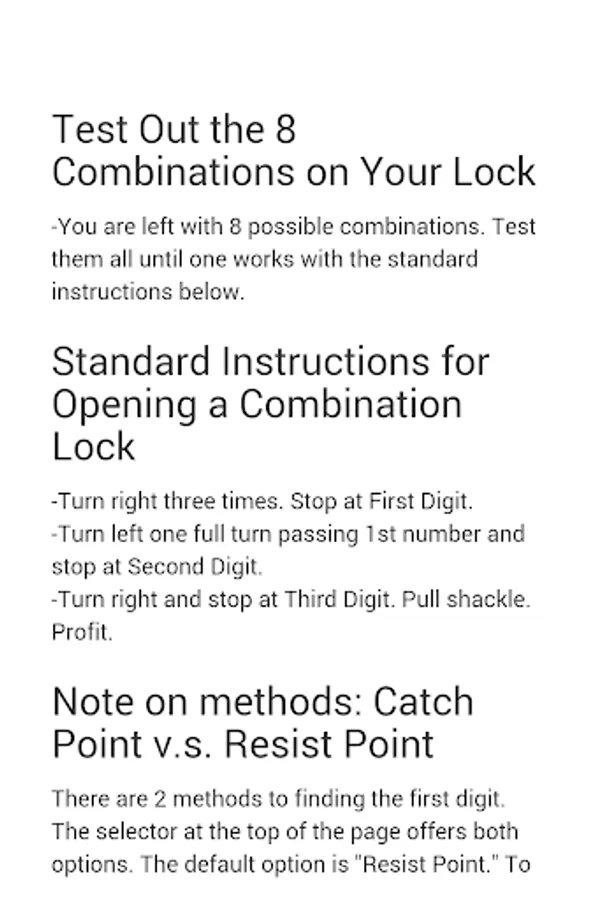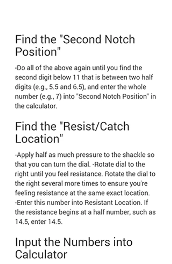 THIS APP SHOULD ONLY BE USED TO HELP YOU GET INTO YOUR OWN LOCK. IT SHOULD NOT BE USED FOR MALICIOUS PURPOSES.