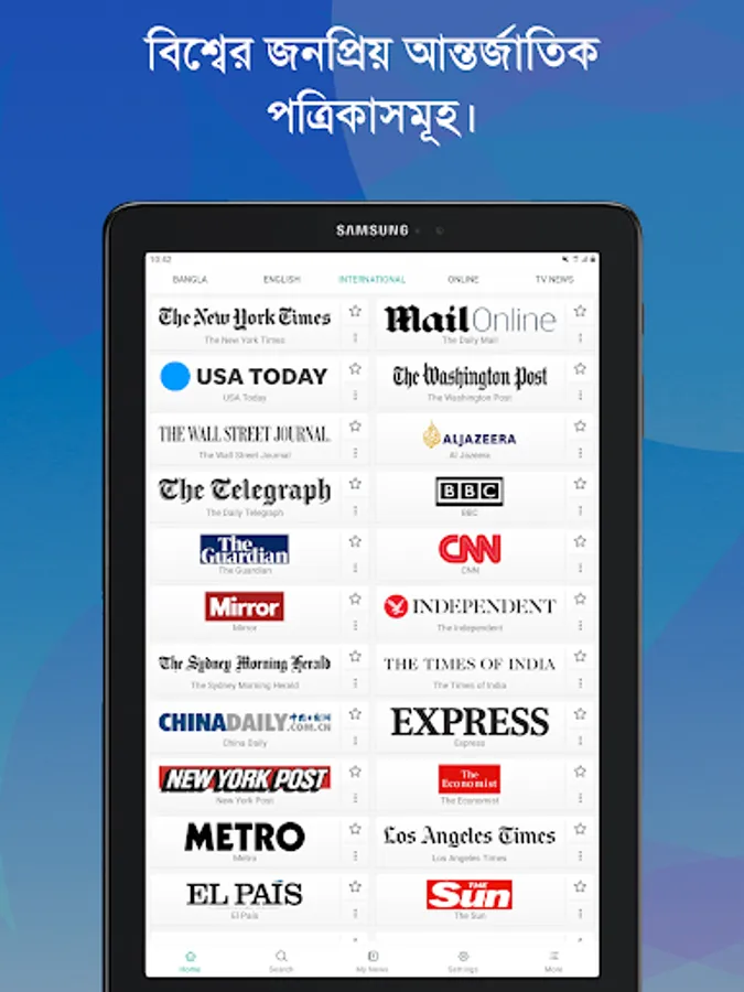 We have added many international newspapers including daily star, star news, the independent, news18 bangla live, ntv news, bbc news, bbc bangla news, anandabazar patrika, hindustan times bangla, indian express etc. So it's a great opportunity for english newspapers readers. It Also helps the people who want to learn english language.