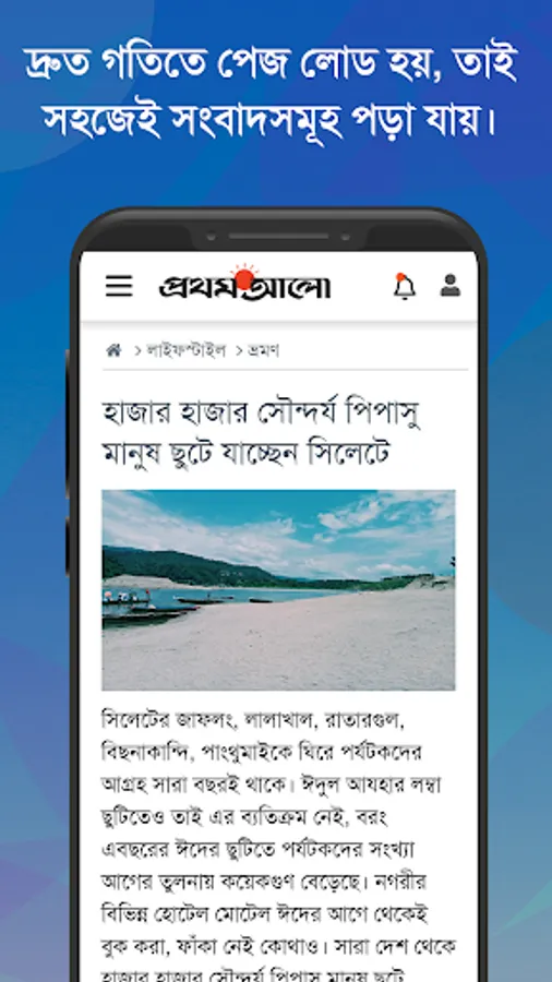 All bangla news papers app sent notification with breaking news regularly. That means always you will be notified through bangla breaking news 24 hrs alert.