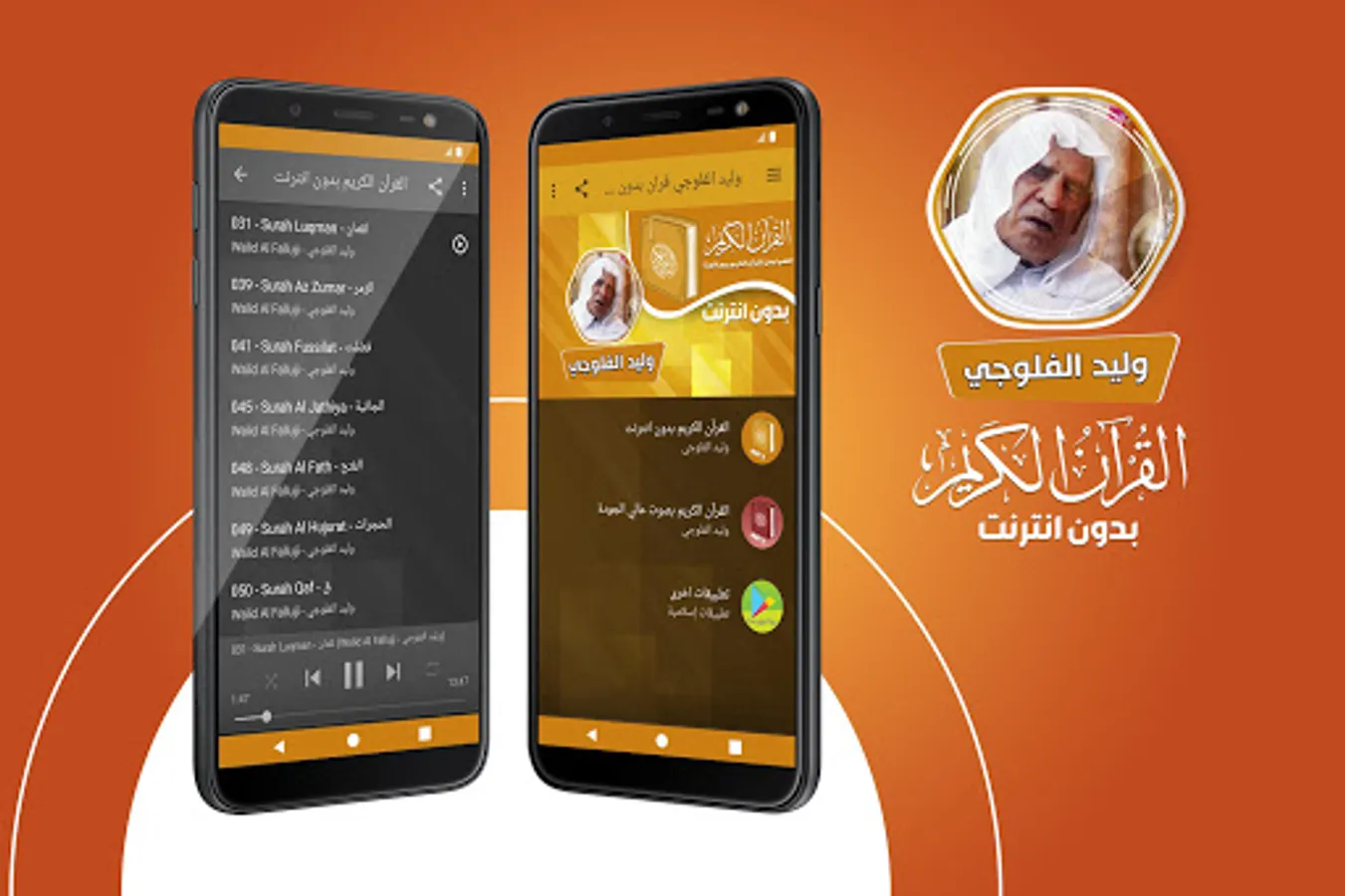 🔹 The Holy Quran application contains the voice of the reader Walid Al-Falluji, listening to the Quran surahs without internet and it is characterized by this application for free recitation of the Quran.