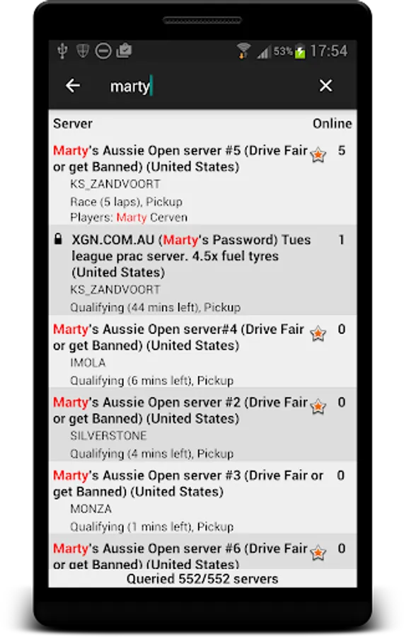 You can search for servers or players by name, and mark servers as favourites to make searching for local races even more convenient.
