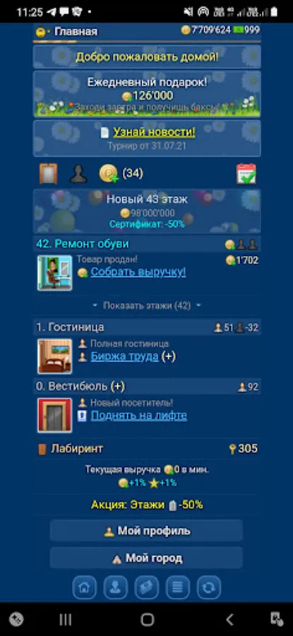 This will allow you to receive coins, but in order to earn bucks to your active participation in the life of a skyscraper.