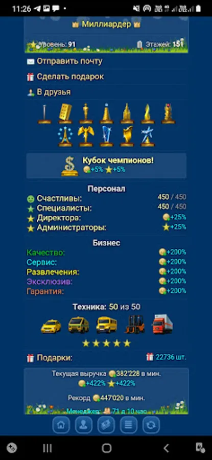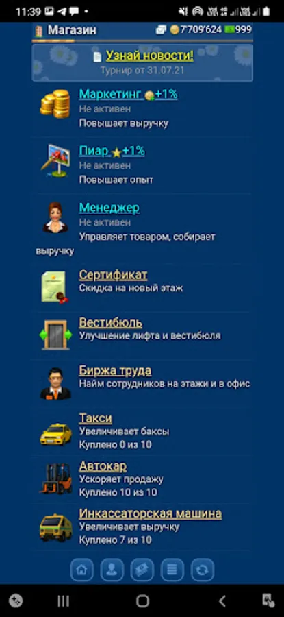 Major currencies in game two - it's coins and bucks. After the construction of the next floor, the player must decide whether he wants to place on each level.