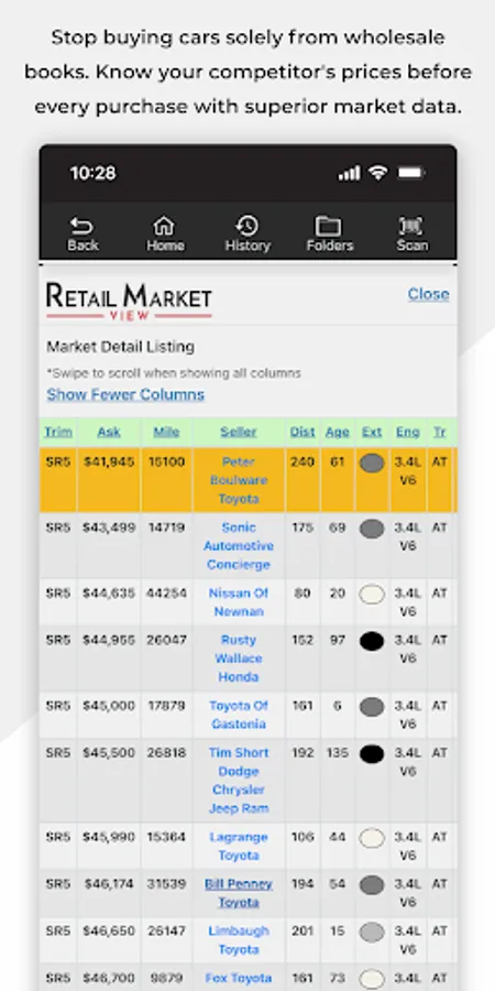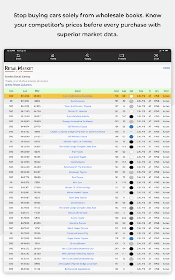 No hidden costs and no gimmicks... we don't give away one feature just to mark-up another. We appreciate transparency, which is what we offer you! Just scan a VIN and VIN Scanner shows you full wholesale and retail market data for the car or truck as well as local competitor inventory pricing.