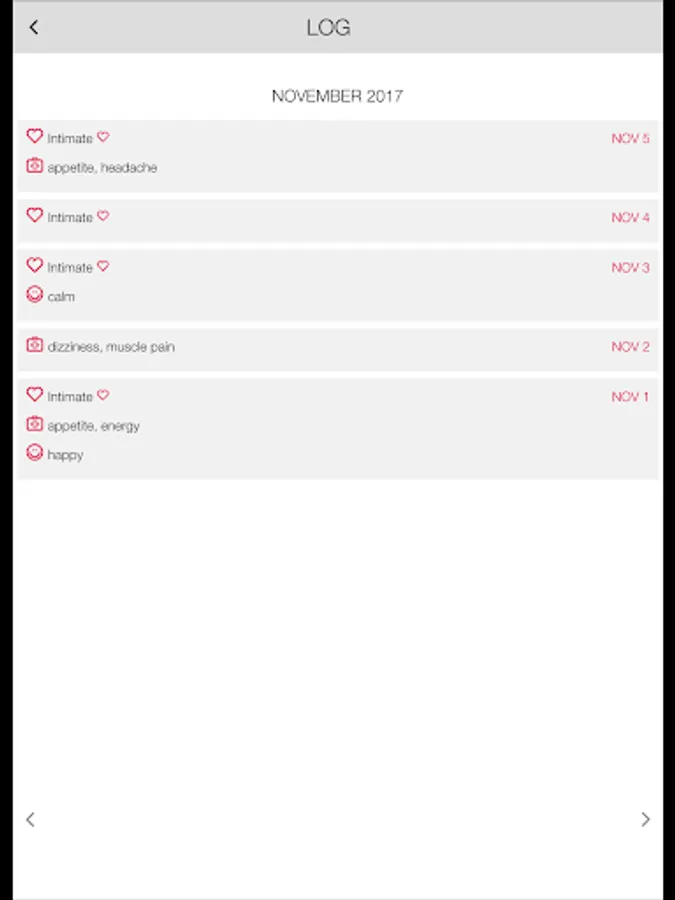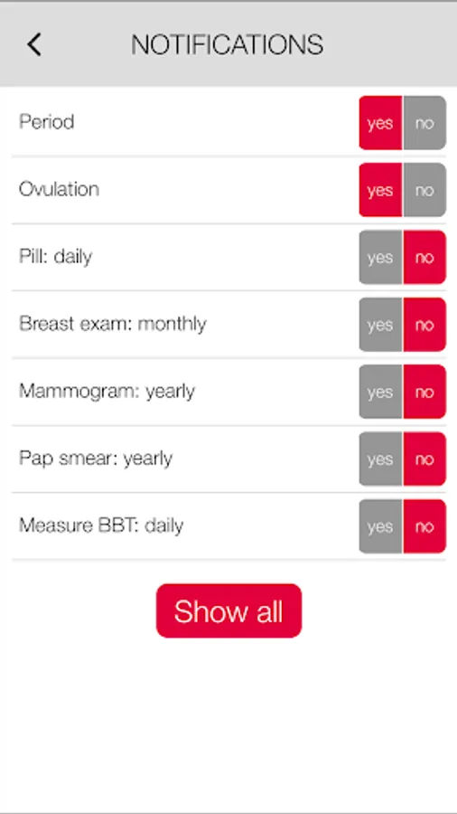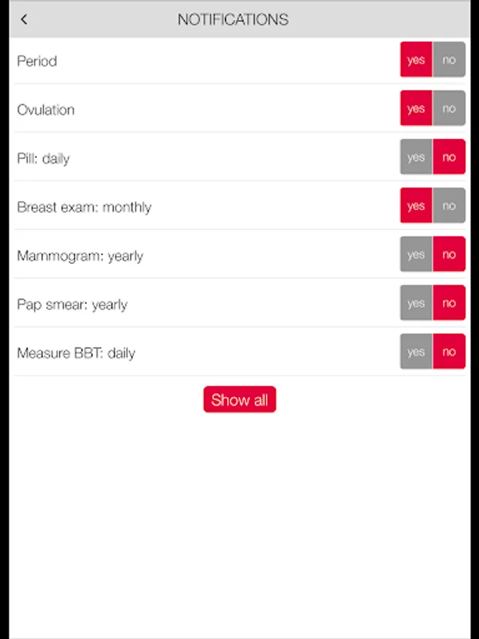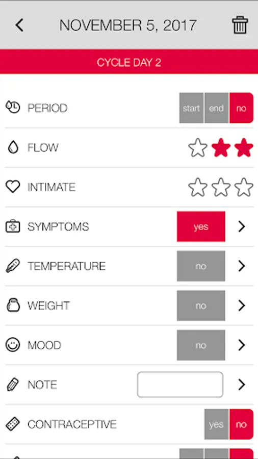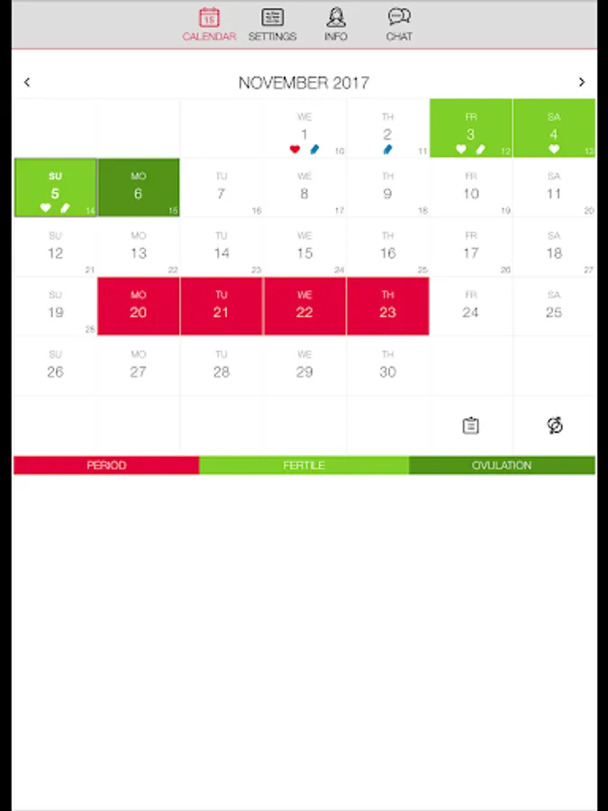 • Ovulation calendar options: PMS, symptoms, moods, weight, temperature.