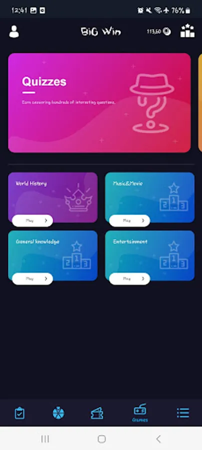 Currently, BigWin offers you a lot of different game genres to choose from: Casual, Strategy, Action, Puzzle, Adventure, Arcade, Quick Play and so on. You can play ANY game you like and start winning!