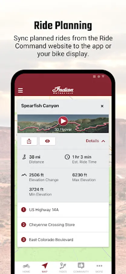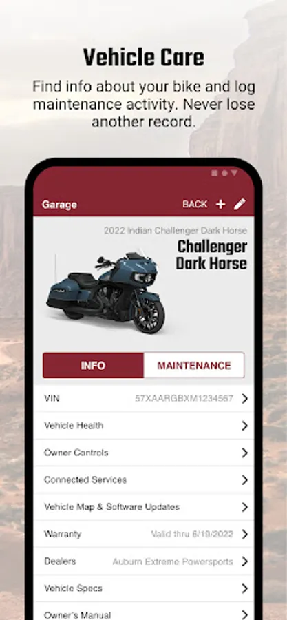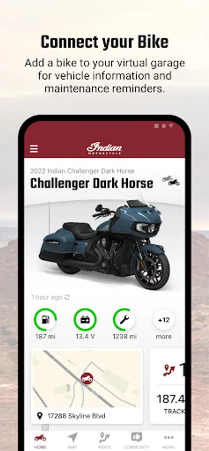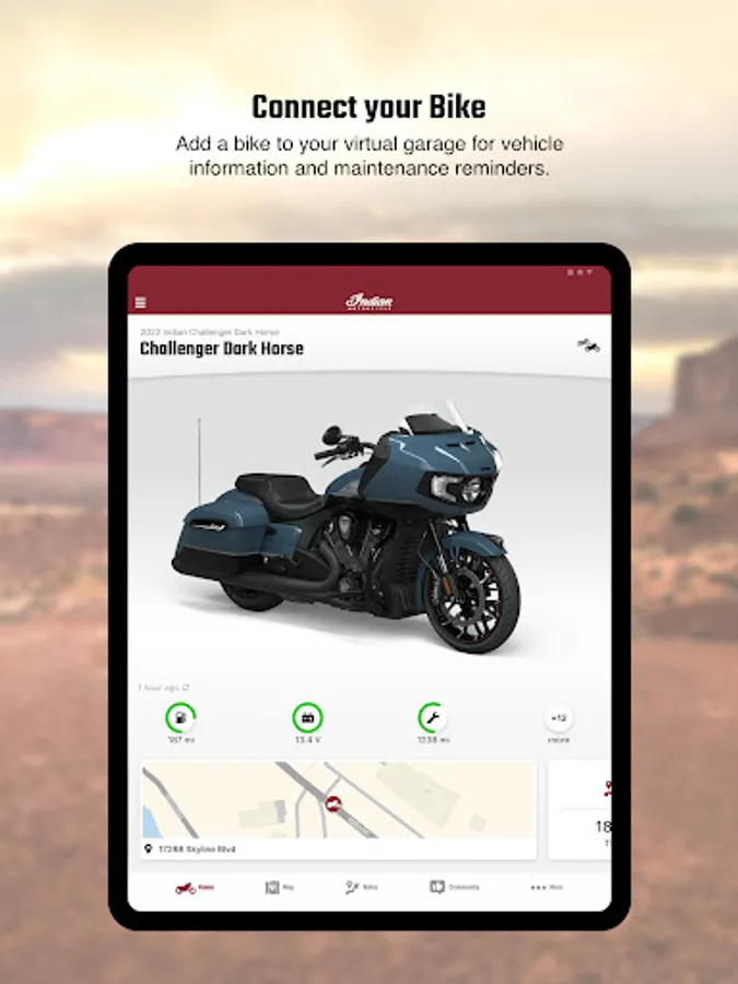 Own your adventure with greater confidence and peace of mind, putting you in the driver seat with access to vehicle and riding details at your fingertips. Information you need when you need it to more easily tackle motorcycle ownership. Download now and plan your first trip!