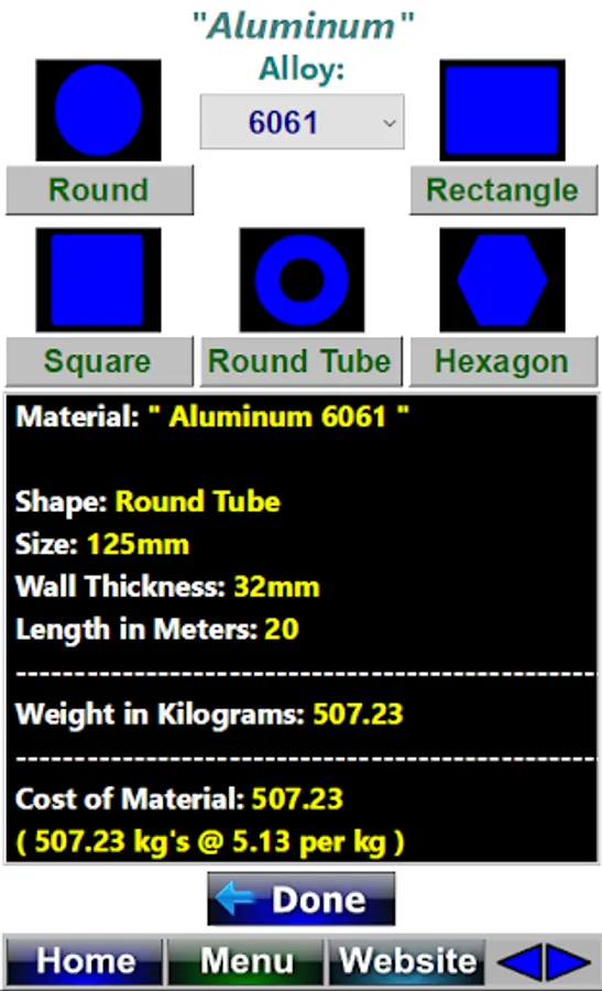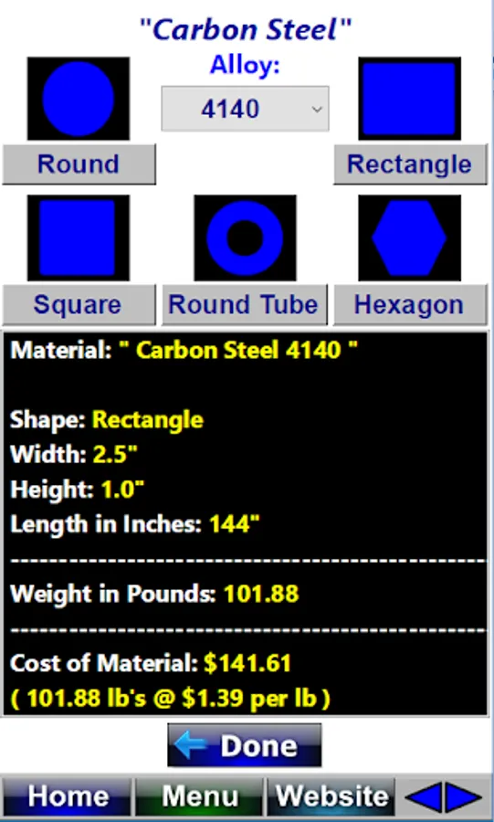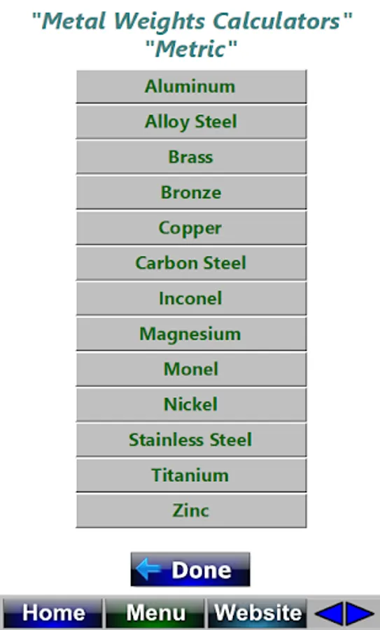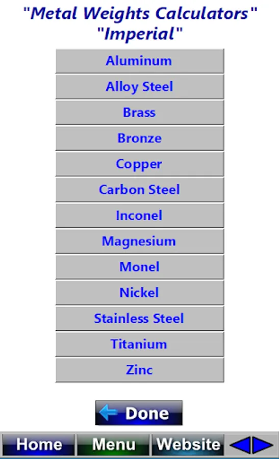 Web Machinist has many calculators for CNC Machinists, Programmers and QC Inspectors. Bolt Circle Calculator, Wheel Bolt Pattern Calculators, Including Calculators for Angles, CNC Applications, Metal Weight Calculators for both Metric and Imperial calculations, CNC Lathe Fanuc Canned Cycles including G76 Thread Cycle Calculators, Simple Lathe Cam CNC Lathe Tool Nose Compensation G-Code Calculators, Chamfer G-Code Calculators, Metric Conversions, Countersink Depth Calculators, Center Drill Depth Calculators, General Conversions, CNC Drilling, CNC Mill & Lathe Deep Hole Drilling calculators, Dovetail Measuring Calculators, Blueprint Symbols, G Codes, M Codes, Machining Formulas and calculators, Spindle speed and feed rate formulas and calculators, circle solving formulas, Hole Patterns, Hole Array Patters including full circle and partial circle patterns, 3 Wire Threads Pitch Diameter Measuring Calculators for Unified Threads, Metric Threads, Acme Threads and Metric Trapezoidal Threads, CNC Lathe Tool Nose Radius compensation calculators, QC Inspection, Manual Machining, Metal Removal Rates, CNC Milling, Reference, Rotary Axis, Speeds & Feeds, Imperial and Module Spur Gear Dimensions Calculators, CNC Tapping, CNC Threading, Manual Lathe Calculators, Unified Threads, Metric Threads, Acme Threads, Metric Trapezoidal Threads, Spur Gears, Module Spur Gears, Imperial Spur Gears, Area Calculators, Triangles, Circle Calculators, Mill Machine Tooling, Collets dimensions, Keyseat Cutters Calculators, Trigonometry Calculators, Hole Pattern Calculators, Wheel Bolt Pattern Calculators, Manual Mill Calculators, Tooling & Hardware, Sine Bar and Compound Sine Plate calculators, Trigonometry & Geometry, Shop Math Calculators, Lathe Spindle Speed Calculators, CNC Tapping Speeds Calculators, Surface Roughness Calculators, Drilling Speeds Calculators, Tapping Speeds Calculators, CNC Turning and Miscellaneous Calculators. This is a Must Have Program for Machinists, CNC Machinists, Machine Shops, QC Inspectors, CNC Set-up Operators, CNC Programmers.