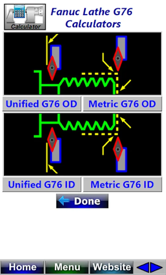 Web Machinist Mobile Pro App has many cnc programming calculators for CNC Machinists, Programmers and QC Inspectors. Bolt Circle Calculator, Wheel Bolt Pattern Calculators, Including Calculators for Angles, G code lists, M code lists, Circle Calculators including Circle Segment Calculator, Circle Section Calculator, Basic Circle Calculators, Right Triangle Calculator, Oblique Triangle Calculator, Angle Conversion Calculator, Machinist Triangle Calculators, CNC Applications, Metal Weight Calculators for both Metric and Imperial calculations, CNC Lathe Fanuc Canned Cycles including G76 Thread Cycle Calculators, Simple Lathe Cam CNC Lathe Tool Nose Compensation G-Code Calculators, tapping solutions app, metal weight calculator, Chamfer G-Code Calculators, Tap Drill Charts and Tapping Calculators, Metric Conversions, Countersink Depth Calculators, Center Drill Depth Calculators, General Conversions, CNC Drilling, CNC Mill & Lathe Deep Hole Drilling calculators, Dovetail Measuring Calculators, Blueprint Symbols, G Codes, M Codes, Machining Formulas and calculators, Spindle speed and feed rate formulas and calculators, circle solving formulas, Hole Patterns, Hole Array Patters including full circle and partial circle patterns, 3 Wire Threads Pitch Diameter Measuring Calculators for Unified Threads, Metric Threads, Acme Threads and Metric Trapezoidal Threads, CNC Lathe Tool Nose Radius compensation calculators, QC Inspection, Manual Machining, Metal Removal Rates, CNC Milling, Reference, Rotary Axis, Speeds & Feeds, Imperial and Module Spur Gear Dimensions Calculators, CNC Tapping, CNC Threading, Manual Lathe Calculators, Unified Threads, Metric Threads, Acme Threads, Metric Trapezoidal Threads, Spur Gears, Module Spur Gears, Imperial Spur Gears, Area Calculators, Triangles, Circle Calculators, Mill Machine Tooling, Collets dimensions, Keyseat Cutters Calculators, Trigonometry Calculators, Hole Pattern Calculators, Wheel Bolt Pattern Calculators, Manual Mill Calculators, Tooling & Hardware, Sine Bar and Compound Sine Plate calculators, Trigonometry & Geometry, circle calculator, Shop Math Calculators, Lathe Spindle Speed Calculators, CNC Tapping Speeds Calculators, Surface Roughness Calculators, Drilling Speeds Calculators, Tapping Speeds Calculators, CNC Turning and Miscellaneous Calculators. Circle Pocket Milling Calculator. This is a Must Have Program for Machinists, CNC Machinists, Machine Shops, QC Inspectors, CNC Set-up Operators, CNC Programmers.