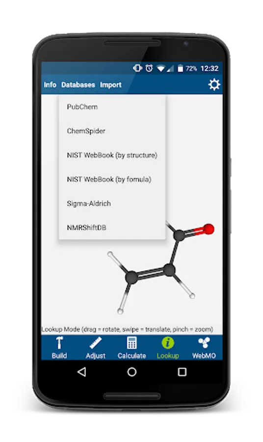 - Build molecules by drawing atoms and bonds in a 3-D molecular editor, or by speaking the name (e.g., “aspirin”)