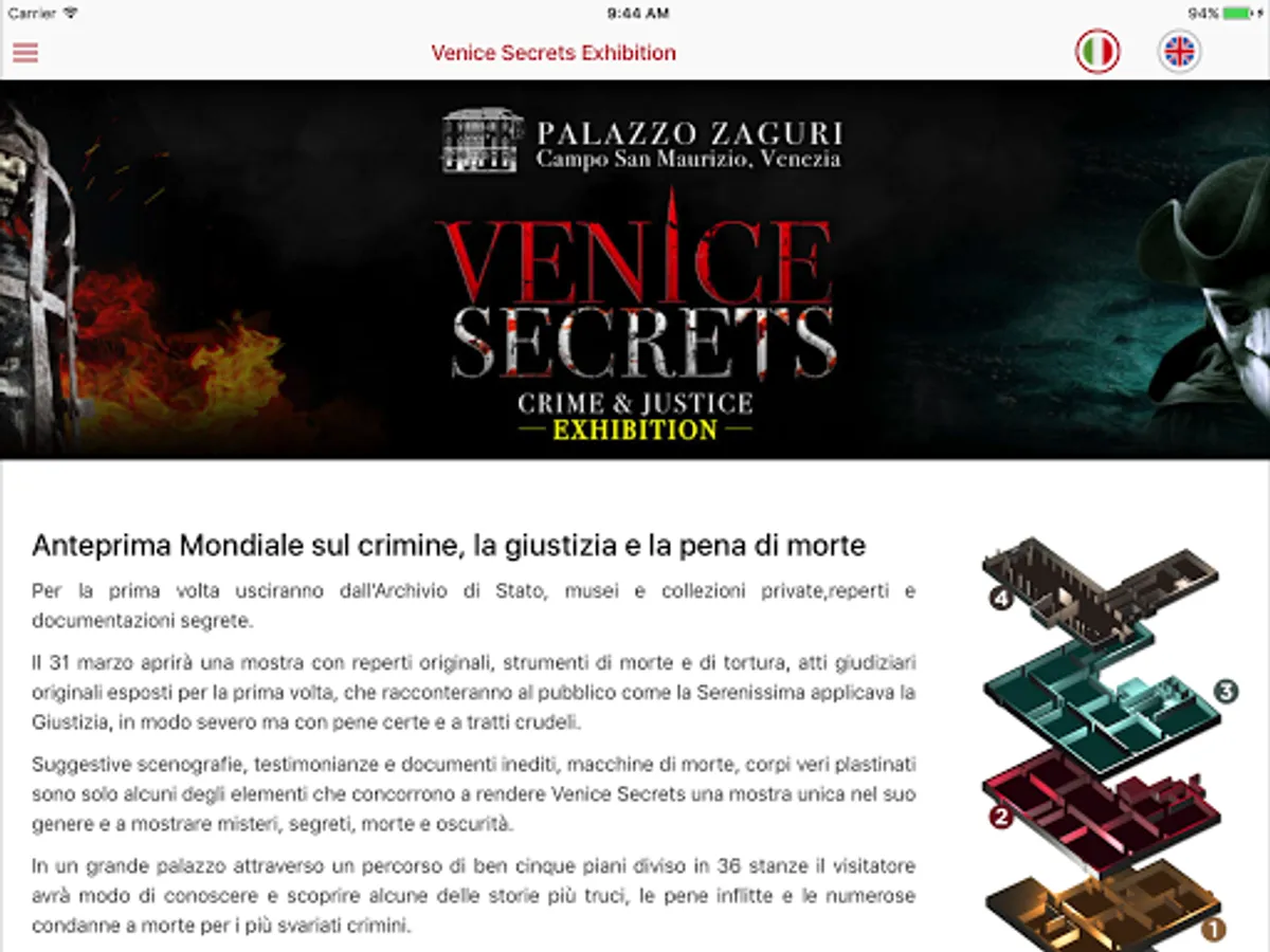 Suggestive scenes, testimonies and unpublished documents, killing machines, real plastinated bodies are just some of the elements that combine to make Venice Secrets a unique exhibition of its kind and to show mysteries, secrets, death and darkness.
