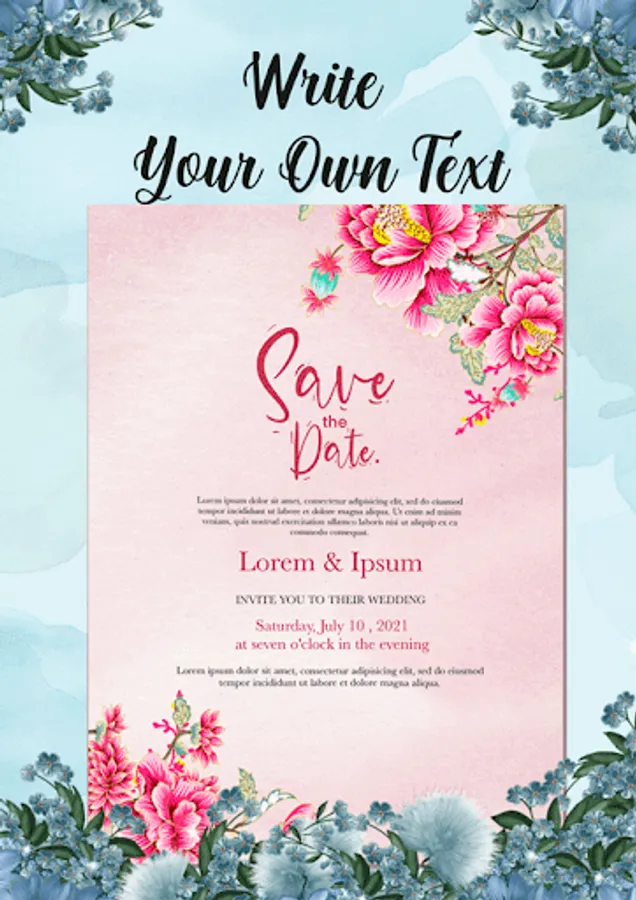 Print, share or post them: Once you've finished your wedding invitations, you can share them with your friends and family. In addition, you can publish it directly on your social networks, send it by email or print it in high quality.