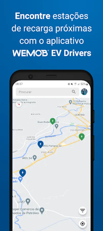Simplify your routine and optimize your time: The easiest way to find available WEMOB charging stations, view their status, power, address and connector types.