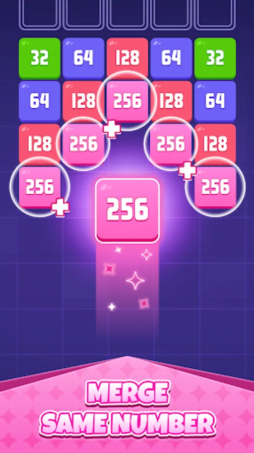 - Simply tap the screen to drop/shoot number blocks to your desired location and watch as they merge into larger blocks with higher numbers.