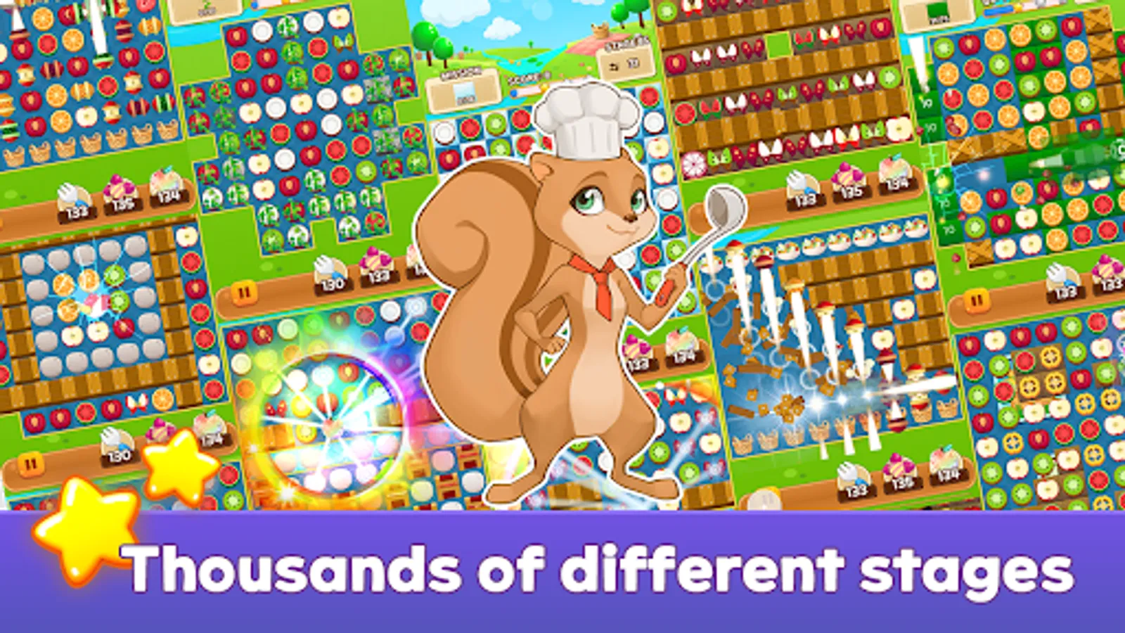 🍓 Match 4 or 5 fruits to create special fruits with various effects