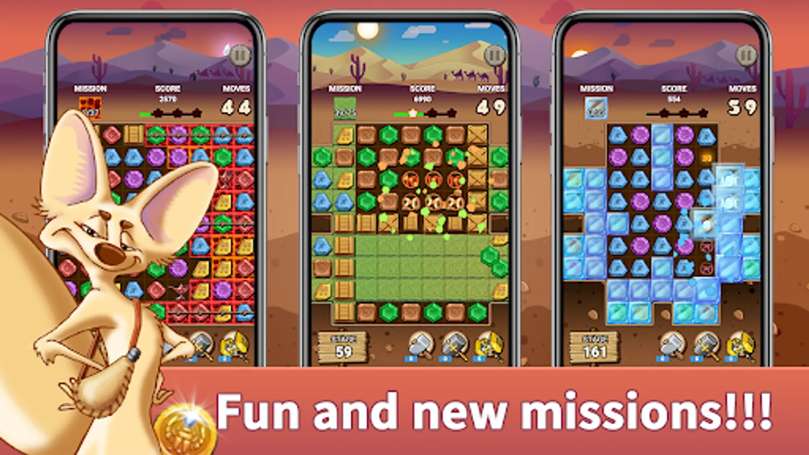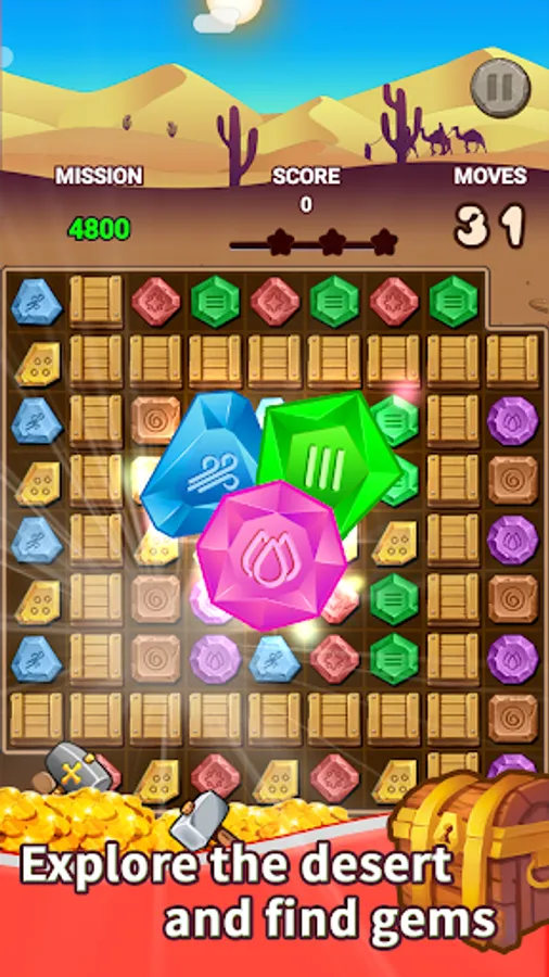 While exploring the hot desert, find oases, gems, and ruins to solve various missions and become the best explorer!!!