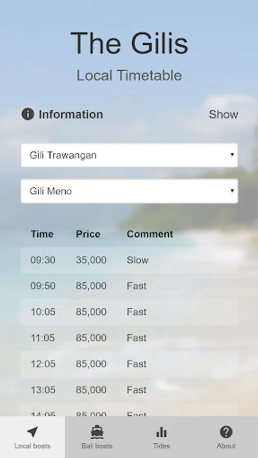 Find out when and what type of boat you can use to jump between Gili Air, Gili Meno, Gili Trawangan and Lombok in Indonesia.