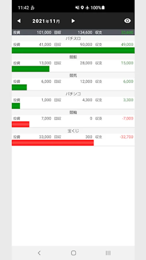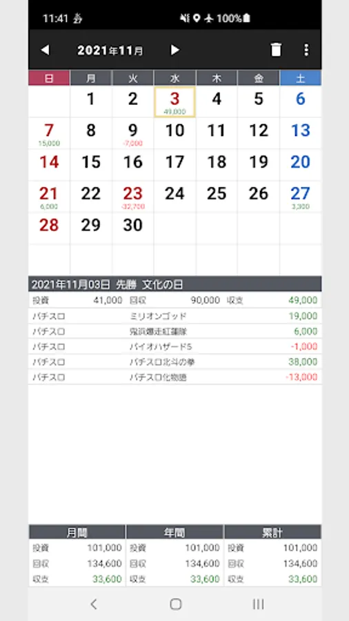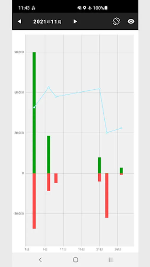 Tap the monthly / year / cumulative area at the bottom of the calendar to display the graph for each item.