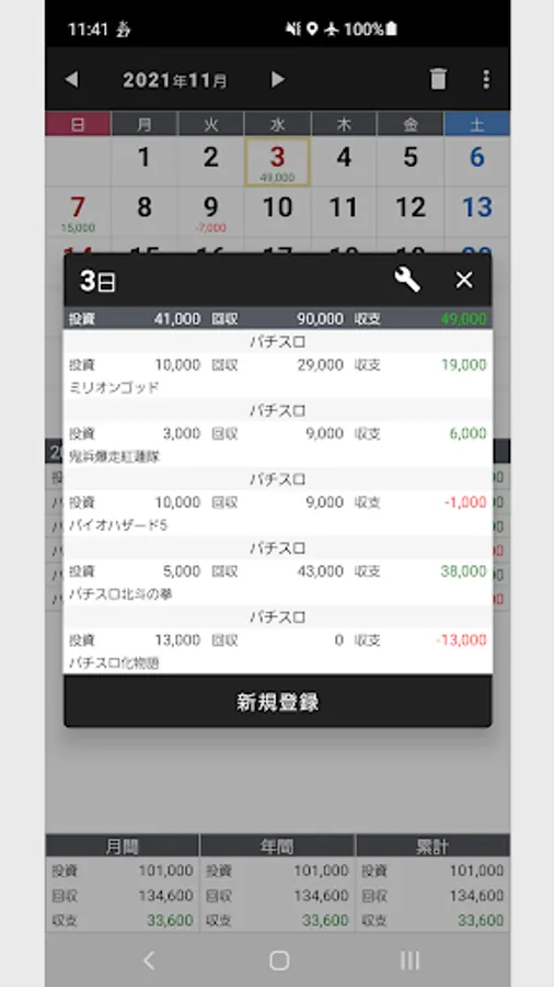 Press and hold a date on the calendar to register, change, or delete the balance.