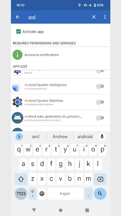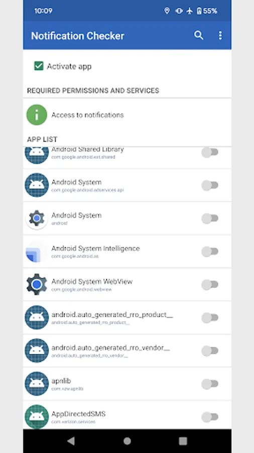 1. When you launch it, a list of apps installed on your device will be displayed.