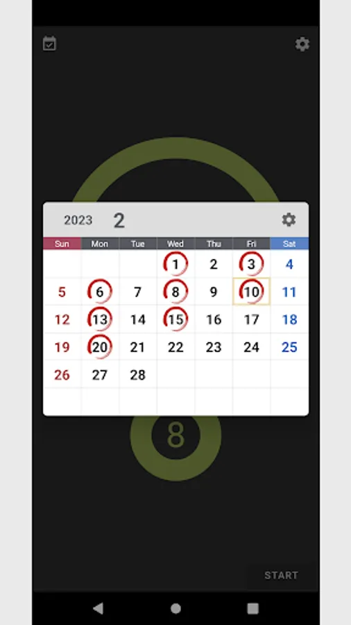 The day you trained is marked with a circle on the calendar, so you can see your exercise status for the current month at a glance.